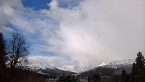 The day before yesterday I was saying to R that the last of the snow was gone off the mountains here for the year. How wrong could I be, because today it was back with a vengeance. Down here at loch level it was only just cold enough to lie a bit in the back garden, but on Bheula and Donich it was white from around 300m.